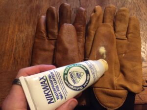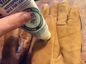 I use leather gloves almost exclusively, because I prefer the feel and comfort over synthetic materials. Some leather gloves come waterproof-treated from the manufacturer, but inevitably, that pre-existing wax or treatment breaks down and wears off leaving your leather susceptible to wetting out.
